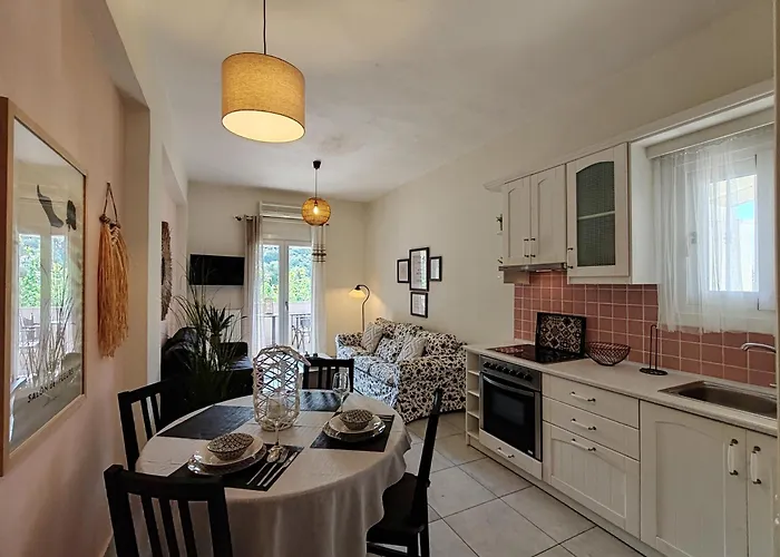 На кухне предоставляется электрочайник, холодильник и кухонная утварь. В апартаментах доступна кофеварка, что обеспечивает гостям комфортное пребывание. Ресторан Angivines, где подают блюда турецкой кухни, разместился в 5 минутах ходьбы. Апартаменты расположились недалеко от автобусной остановки Kassiopi Centre. Желающих отдохнуть ждет терраса.